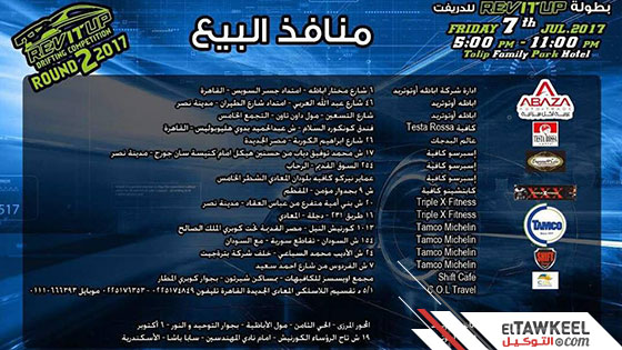 خلال أيام قليلة ستنطق الجولة الثانية بموسم 2017 من بطولة Rev It Up للدريفت، والتي سيشارك فيها عدد من أبطال الدريفت في مصر.
