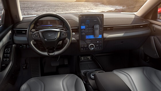 ومن الداخل منحت فورد هذا الموديل تصميم أنيق وبسيط، والذي ضم شاشة رأسية 15.5 بوصة باللمس مخصصة لتشغيل النظام الترفيهي والمعلوماتي بالسيارة، بالإضافة لشاشة 10.2 بوصة رقمية بديلة للعدادات التقليدية للسيارة، ونظام صوتي يضم 10 سماعات، وسقف بانورامي، وعجلة قيادة مكيفة ومتعددة الاستخدامات، ومقاعد أمامية مكيفة.