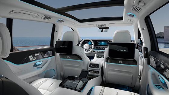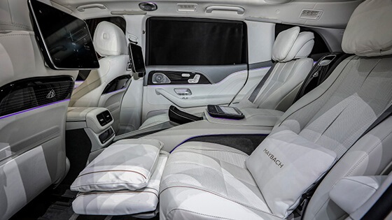 وذكرت الشركة أن هذه السيارة الفارهة مزودة بالعديد من التجهيزات منها إطارات بأطواق (جنوط) بمقاس 22 بوصة، ودواسات مضيئة مغطاة بطبقة مطاطية أسفل أبواب السيارة لحماية الركاب من التزحلق عند ركوب السيارة، ومقاعد جلدية فخمة مكيفة وقابلة للتعديل بأكثر من زاوية، وسقف بانورامي، ونظام تكييف منفصل خاص بالجزء الخلفي من السيارة، وتابلت يعمل باللمس موجود بالجزء الخلفي للتحكم في النظام الترفيهي للسيارة.