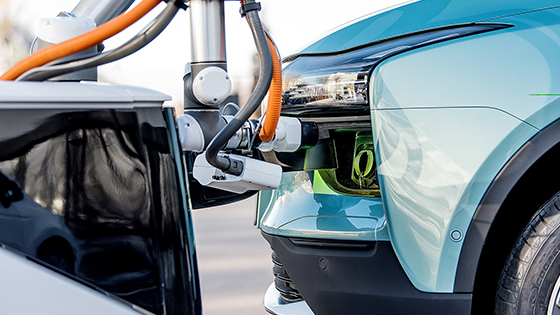 ويمتلك الروبوت كاميرات تصوير وأجهزة استشعار تجعله قادر على تحديد مكان مقبس الشحن بالسيارات الكهربائية، ومن خلال ذراع صغير أعلى الروبوت يتم توجيه مقبس الشحن نحو السيارة ليتم شحنها بشكل سريع.