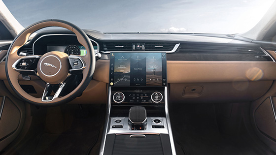ولأول مرة بسياراتها تقدم جاجوار شاشة منحنية 11.4 بوصة تعمل باللمس لتشغيل النظام الترفيهي والمعلوماتي بهذا الموديل، والتي زودتها الشركة بواجهة سهلة وبسيطة تمكن السائق من الوصول إلى 90% من وظائف السيارة بضغطة أو ضغطتين على الأكثر على الشاشة.