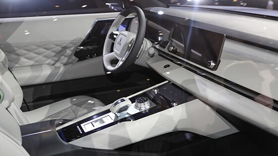 ومن الداخل يتميز هذا النموذج بثلاثة صفوف من المقاعد، ومنحت الشركة هذا النموذج تصميم داخلي أنيق بعدد قليل جدا من أزرار التحكم، وذلك بفضل شاشة كبيرة بمنتصف لوحة القيادة مخصصة لتشغيل النظام الترفيهي والمعلوماتي وأيضا للتحكم بالعديد من وظائف وأنظمة السيارة.