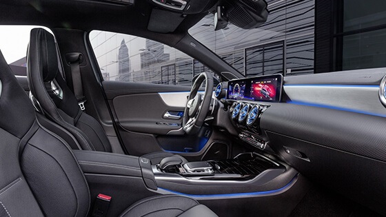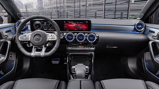 ويحمل هذا الموديل إطارات بأطواق (جنوط) رياضية 18بوصة (19 بوصة اختيارية)، بالإضافة لعجلة قيادة رياضية من قسم AMG الرياضي بالشركة، ونظام ترفيهي ومعلوماتي متطور يعمل من خلال شاشة كبيرة بمنتصف لوحة القيادة، بالإضافة لشاشة رقمية أخرى بديلة للعدادات التقليدية بالسيارة.
