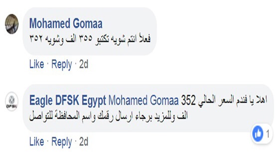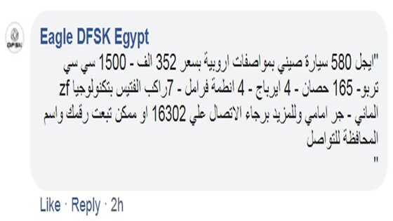 تناولت بعض المواقع الاخبارية خلال الأيام الماضية خبر عن شركة ناشيونال موتورز وكيل سيارات دونج فينج سوكون (DFSK) في مصر، حيث تناول هذا الخبر تخفيض الوكيل من سعر سيارة ايجل 580 إلى 355 ألف جنيه (15 ألف جنيه تخفيض)، لكن تبين أن هذه الأرقام خاطئة، حيث ذكر الوكيل من خلال صفحته على فيسبوك أن سعر هذه السيارة بعد التخفيض بلغ 352 ألف جنيه وليس 355 ألف جنيه.