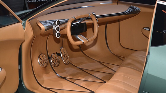 وظهر النموذج بلون أخضر معدني لامع، ومنحته الشركة تصميم انسيابي أنيق، وذكرت جينيسيس أن النموذج تم تصميمه بتعاون استديوهات التصميم التابعة للشركة في كوريا الجنوبية وأمريكا وألمانيا.
