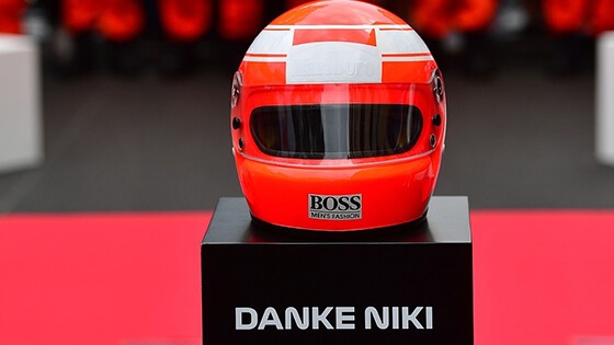 جدير بالذكر أن هاملتون ارتدى في هذا السباق خوذة رأس حمراء اللون للمرة الأولى في مشواره الرياضي، وذلك كنوع من التقدير والثناء للسائق الراحل نكي لاودا الذي اشتهر بارتدائه خوذة رأس حمراء خلال مشواره الرياضي، كما ارتدى جميع السائقين قبل وبعد السباق قبعات رأس حمراء حملت في مقدمتها اسم السائق الراحل.