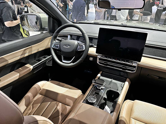 أما داخل الشاحنة فنجد أن التكنولوجيا والراحة تجتمعان معا، وذلك بوجود شاشة معلومات وترفيه كبيرة (على غرار تصميم سيارات تسلا) تهيمن على لوحة القيادة، ومجموعة عدادات رقمية تضيف إحساسًا بالتطور، وفرش داخلي بألوان فاتحة تشبه الجلد وتوفر إحساسًا بالفخامة، مع فتحات تكييف مخصصة للركاب الخلفيين.