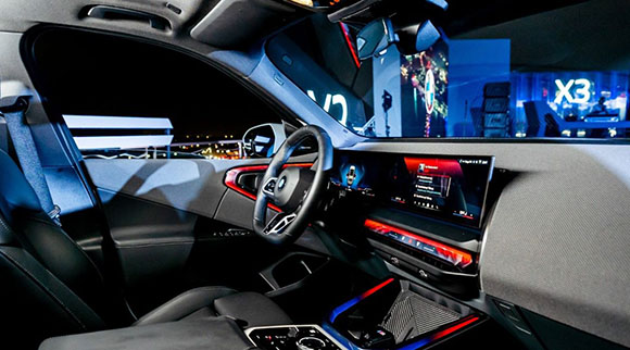 شاشتان منحنية (12.3 بوصة للعدادات + 14.9 بوصة وسطية) تعملان بنظام iDrive 9 مع تحديثات عبر الإنترنت.