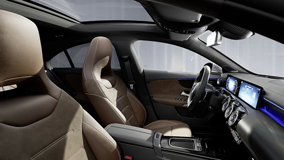 أما المقصورة الداخلية، فتجمع بين الفخامة والتقنيات الحديثة، مع نظام MBUX بشاشتين عريضتين، ومقاعد رياضية داعمة، وخامات عالية الجودة تعكس الطابع الفاخر للسيارة.