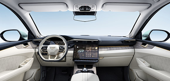 وتتميز المقصورة الداخلية للسيارة بمستوى مرتفع من الفخامة والتكنولوجيا، حيث تشمل: