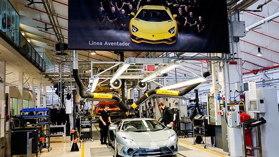 عدد 4,5 سيارة يومياً. هذا ويتم دهان سيارات لامبورجينى السوبر رياضية (هوراكان &