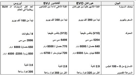 من لامبورجينى مع تنفس طبيعى ودون إضافة أجهزة تيربو عليها ، وهو ما يجعلها الأفضل