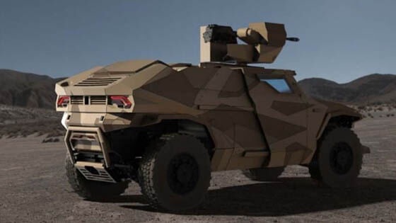 وتتميز هذه السيارة الحربية بضمها نظام دفع هجين يضم محرك ديزل ومحرك كهربائي يعمل بجانبه، وبذلك يمكن تشغيل السيارة بمحركها الكهربائي فقط عند الحاجة، وبذلك يمكن أن تقترب من هدفها بدون إصدار أي صوت، ولذلك منحها البعض لقب "القاتل الصامت".