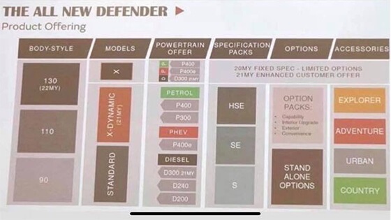 شهدت الأيام القليلة الماضية تسريب مواصفات سيارة لاند روفر ديفندر القادمة على الانترنت، حيث تبين أن هذه التسريبات كانت لصور تم التقاطها أثناء عرض مواصفات هذه السيارة لبعض من عملاء الشركة في حدث خاص.