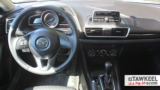 بالدخول إلي مقصورة السيارة تستكمل السيارة عرض شخصيتها الرياضية بتصميم داخلي يستمتع بجاذبيته السائق بشكل أكبر من أي من راكبي السيارة، خاصة مع عدادات السيارة المتفردة التي يحمل تصميمها حدة لا تجدها إلا بالسيارات الرياضية، كما أن عداد لفات المحرك RPM هو عداد ديجيتال مما يجعل السيارة ذات شخصية فريدة خاصة في المرات الأولي من قيادتها، كما تعرف مازدا أن لبريق الكاربون فايبر مكانته الخاصة عند محبي السيارات الرياضية، وهو ما ستجده في العديد من الأجزاء الداخلية بمازدا 3 الجديدة.