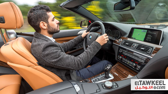 هذا من ناحية البيانات، أم من ناحية القيادة، فوجود بدالات لنقل الحركة خلف عجلة القيادة يجعل القيادة سهلة ويقودك لفعل لا شئ سوي الإستمتاع بالقيادة بالمعني الحرفي، فمع وجود منحني كل ٥٠ متراً تصل زوايا بعضهم إلي أكثر ما يقارب ١٨٠ درجة، تتسارع مع السيارة التي تصل من الثبات إلي سرعة ١٠٠ كيلومتر في الساعة خلال ٤.٦ ثانية فقط حتي تصل للمنحني التالي، فتقوم بتخفيض النفلات بالبدالات خلف عجلة القيادة لتصل للتروس الأكبر لتعبر المنحني وتتسارع من جديد في طريق ذو حارتين كل منهما في إتجاه معاكس، يصعدان للأعلي في إطلالة علي المحيط، مع عمل أنظمة الثبات ونظام التعليق الديناميكي ونظام Active Steering في الكواليس .. قد يبدو ذلك التعريف المثالي لجملة Sheer Driving Pleasure التي تقترن بعلامة BMW الألمانية، فهو ما تشعره فعلاً أثناء قيادة سيارة مثل هذه علي مثل هذا الطريق الذي يخرج أفضل ما فيها .. وبرغم روعة المشهد بأداء السيارة والطبيعة الساحرة للطريق، إلا أنه ينقصه Soundtrack أو بعض الموسيقي المحببة في الخلفية .. هذه الموسيقي هي صوت مخرج العادم الرياضي الجديد بالفئة السادسة .. فالسيارة مزودة بنظام صوتي من Bang & Olufsen الرائدة بتجهيزات الصوتيات، وهو ما يغريك لتشغيل أغانيك المفضلة والإستمتاع بها علي الطريق مع السقف المفتوح، لكن مع الفئة السادسة ستجد نفسك تمد يدك لتخفيض صوت النظام الصوتي المبهر، والإستمتاع بصوت مخرج العادم الرياضي، والذي ستسمعه بشكل أكبر علي لفات محرك أعلي عند القيادة علي وضعيات قيادة ECO PRO أو Comfort، أو في جميع الحالات عند القيادة علي وضعيات Sport أو Sport+، وهو ما يقودنا إلي الديناميكية الكبيرة في أنظمة قيادة الفئة السادسة الجديدة، وهو الأمر المعروف عن سيارات BMW بشكل عام.