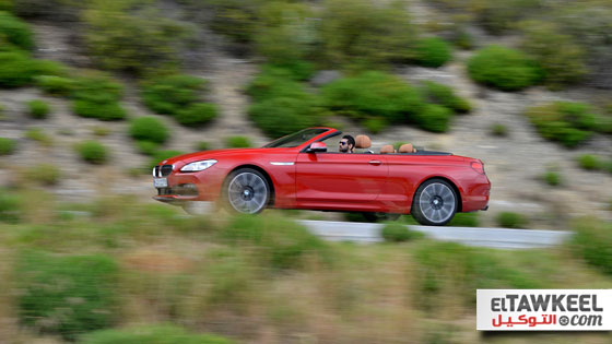 هذا من ناحية البيانات، أم من ناحية القيادة، فوجود بدالات لنقل الحركة خلف عجلة القيادة يجعل القيادة سهلة ويقودك لفعل لا شئ سوي الإستمتاع بالقيادة بالمعني الحرفي، فمع وجود منحني كل ٥٠ متراً تصل زوايا بعضهم إلي أكثر ما يقارب ١٨٠ درجة، تتسارع مع السيارة التي تصل من الثبات إلي سرعة ١٠٠ كيلومتر في الساعة خلال ٤.٦ ثانية فقط حتي تصل للمنحني التالي، فتقوم بتخفيض النفلات بالبدالات خلف عجلة القيادة لتصل للتروس الأكبر لتعبر المنحني وتتسارع من جديد في طريق ذو حارتين كل منهما في إتجاه معاكس، يصعدان للأعلي في إطلالة علي المحيط، مع عمل أنظمة الثبات ونظام التعليق الديناميكي ونظام Active Steering في الكواليس .. قد يبدو ذلك التعريف المثالي لجملة Sheer Driving Pleasure التي تقترن بعلامة BMW الألمانية، فهو ما تشعره فعلاً أثناء قيادة سيارة مثل هذه علي مثل هذا الطريق الذي يخرج أفضل ما فيها .. وبرغم روعة المشهد بأداء السيارة والطبيعة الساحرة للطريق، إلا أنه ينقصه Soundtrack أو بعض الموسيقي المحببة في الخلفية .. هذه الموسيقي هي صوت مخرج العادم الرياضي الجديد بالفئة السادسة .. فالسيارة مزودة بنظام صوتي من Bang & Olufsen الرائدة بتجهيزات الصوتيات، وهو ما يغريك لتشغيل أغانيك المفضلة والإستمتاع بها علي الطريق مع السقف المفتوح، لكن مع الفئة السادسة ستجد نفسك تمد يدك لتخفيض صوت النظام الصوتي المبهر، والإستمتاع بصوت مخرج العادم الرياضي، والذي ستسمعه بشكل أكبر علي لفات محرك أعلي عند القيادة علي وضعيات قيادة ECO PRO أو Comfort، أو في جميع الحالات عند القيادة علي وضعيات Sport أو Sport+، وهو ما يقودنا إلي الديناميكية الكبيرة في أنظمة قيادة الفئة السادسة الجديدة، وهو الأمر المعروف عن سيارات BMW بشكل عام.