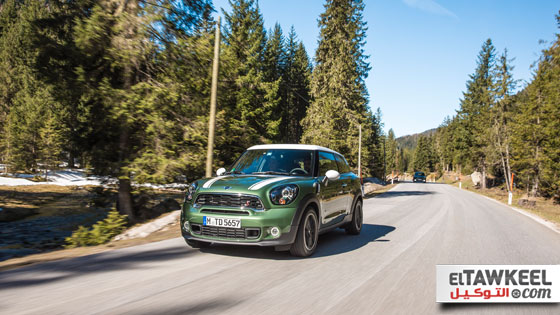 أبواب طويلة مع زجاج للنوافذ غير محاط بإطارات من أجل إنطباع رياضي، مصابيح أمامية LED، الشكل الإنسيابي المميز من الجانب للسيارات الكوبيه .. Paceman تقدم النسخة ذات الملامح الرياضية من الشقيقة Countryman، وفي الواقع أنهما لا يختلفان كثيراً في تجربة القيادة، ووضعية القيادة، وبعد قيادة بضعة كيلومترات مع MINI Cooper S Paceman ALL4 داخل المنحنيات الحادة في جبال الألب، يظهر دور نظام الدفع الكلي ALL4 في تماسك السيارة في تلك المنحنيات، خاصة مع الطرق الزلقة بفعل ذوبان الثلج، وفي الواقع أن السيارة لا تبالي في تخطي تلك المنحنيات بأقصي سرعة -ضمن الحدود القانونية-.